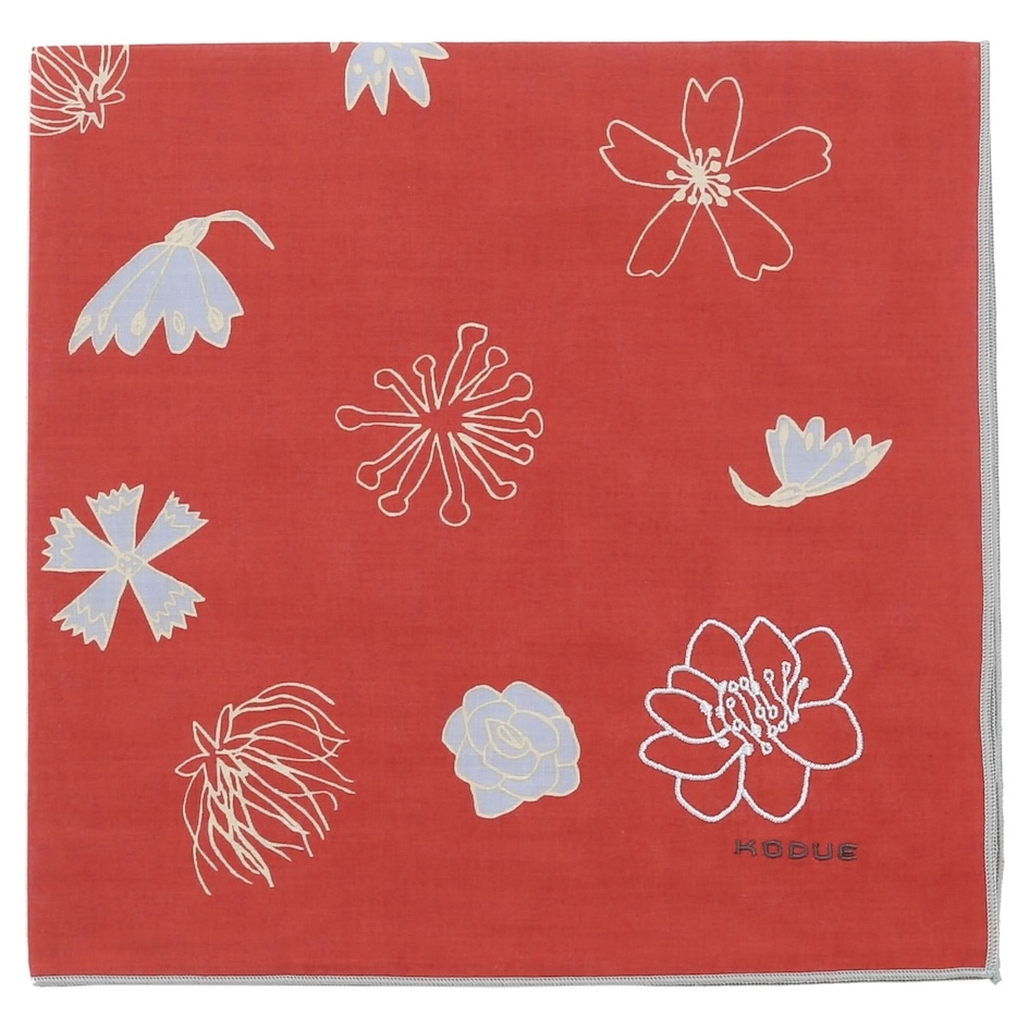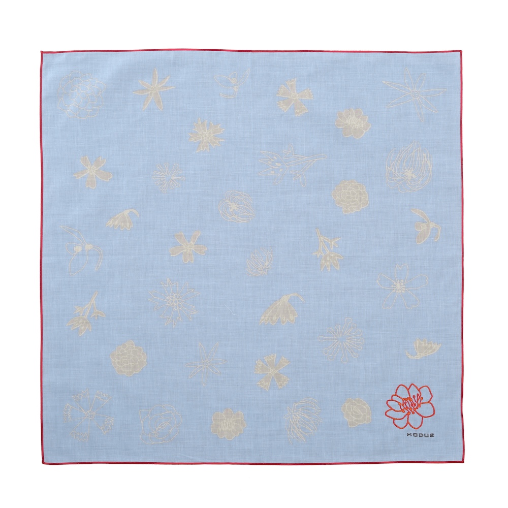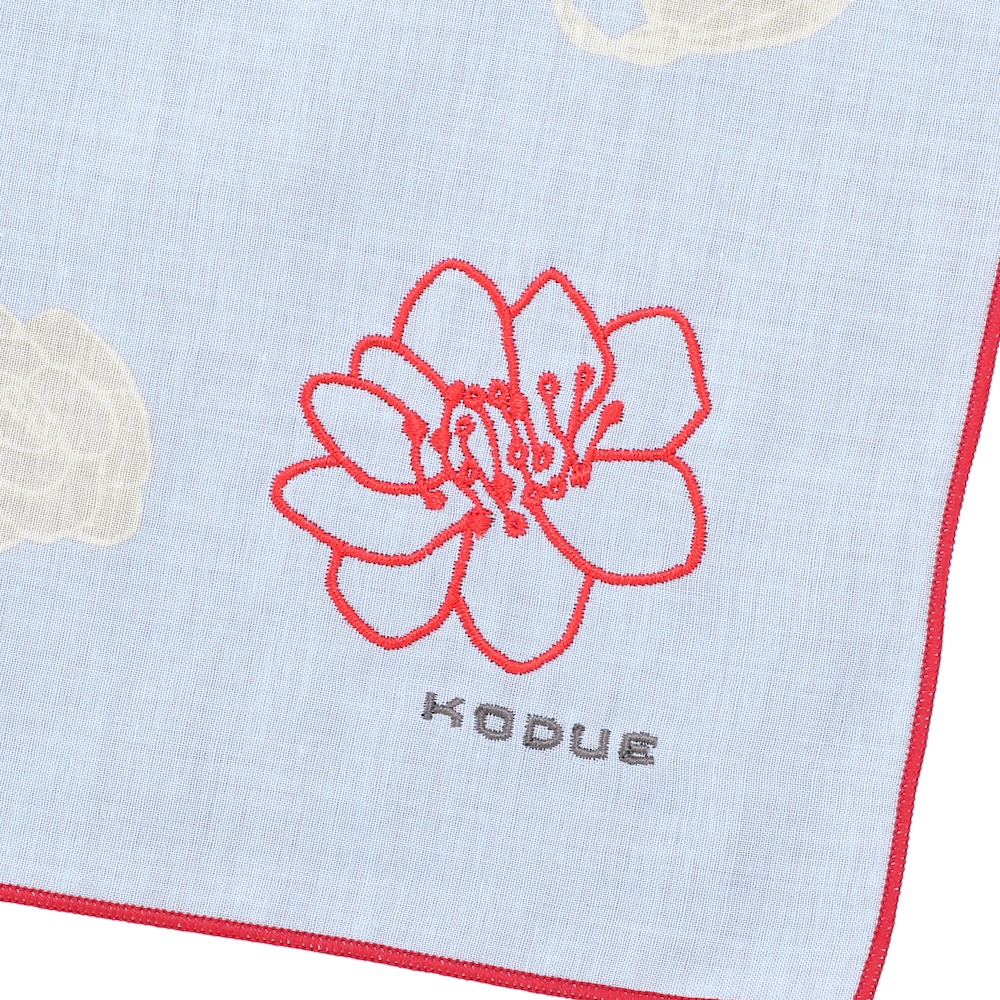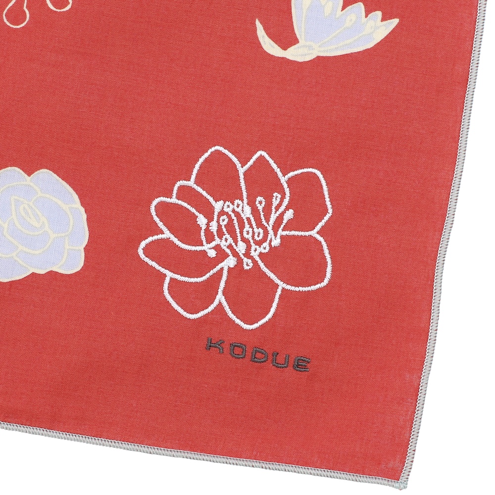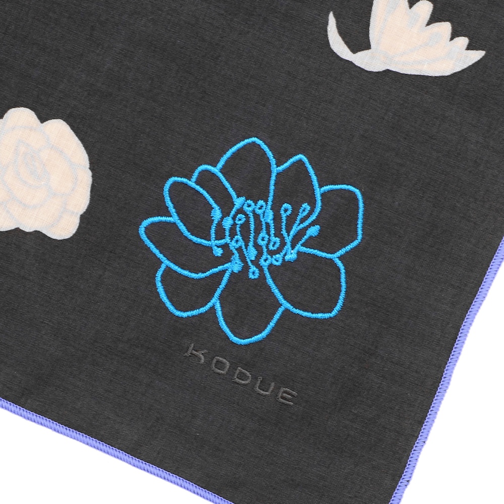 角には大きな花の刺繍と「KODUE」ロゴの刺繍をあしらい、上品なアクセントに。