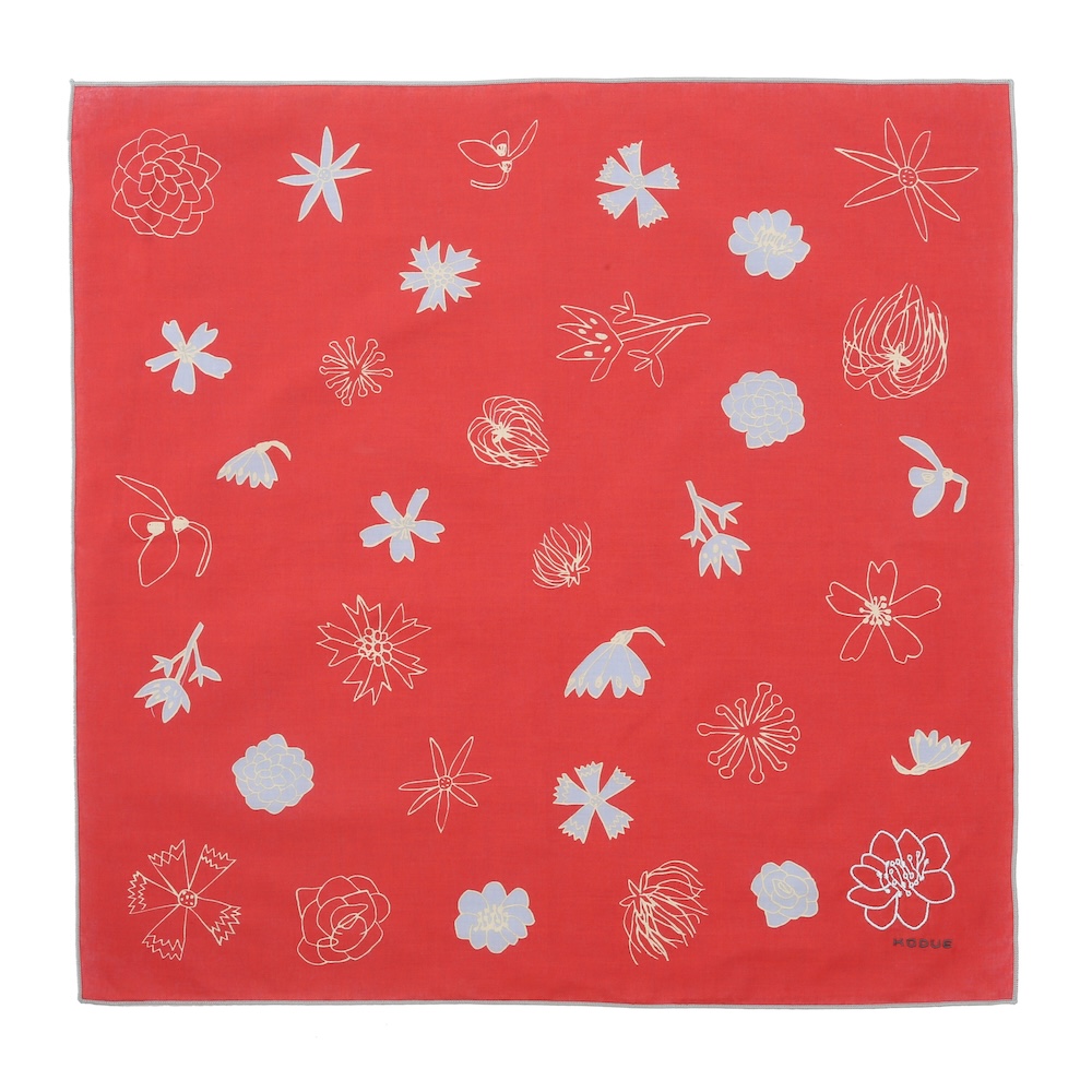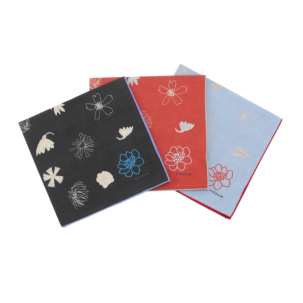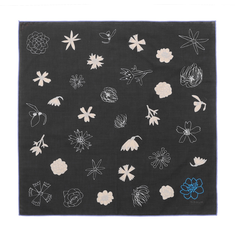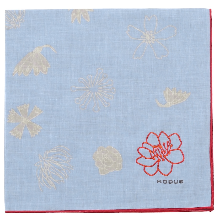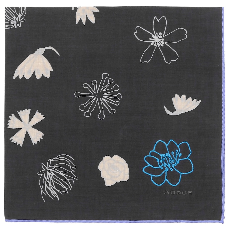 角には大きな花の刺繍と「KODUE」ロゴの刺繍をあしらい、上品なアクセントに。